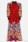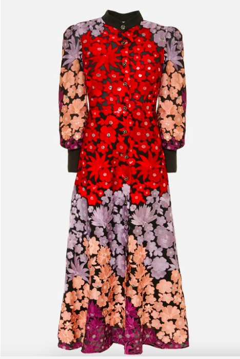This design by L.D. it is made of black georgette with embroidered flowers in four colors that will not leave you indifferent.