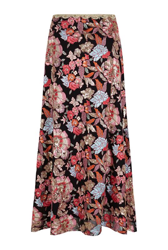 In L.D. you will find pieces that will make you feel special, like the IRENE skirt, made of georgette with pink and blue flower embroidery with sequin detail and gold thread. Trimming detail at waist. Hidden zipper back closure. Lined.