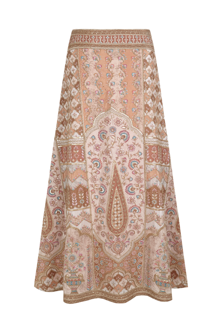 Long, high-waisted viscose skirt with delicate sequins and a floral print. Hip cut and back closure with hidden in-seam zipper.. Asymmetrical hem. Lined.