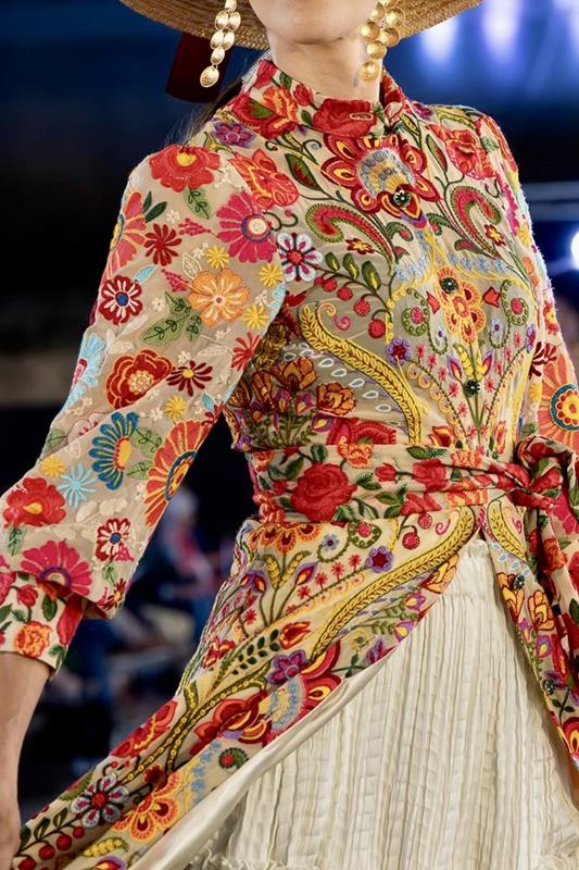 El vestido camisero Magnolio está confeccionado en un original georgette bordado de flores en algodón, con un colorido que no te dejará indiferente. Diseño de cuello mao y manga larga acabada en puño. Cierre frontal con botones joya y detalle de lazada. Bajo asimétrico. Forrado.